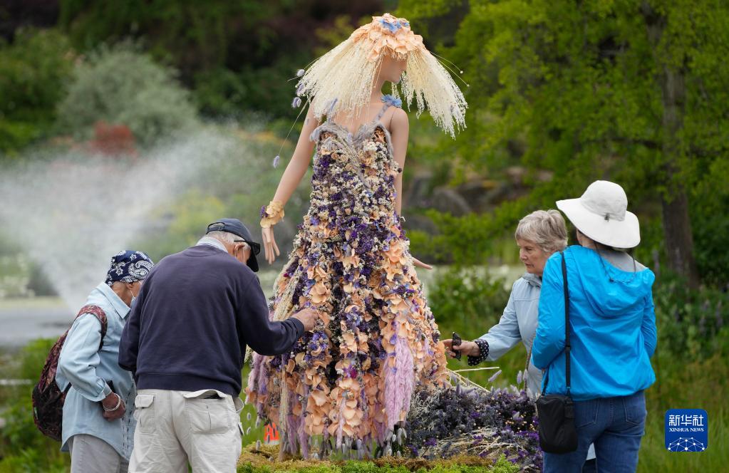 這是6月9日在加拿大溫哥華舉辦的“花卉城市之旅”花卉展上拍攝的花卉裝置藝術(shù)作品。