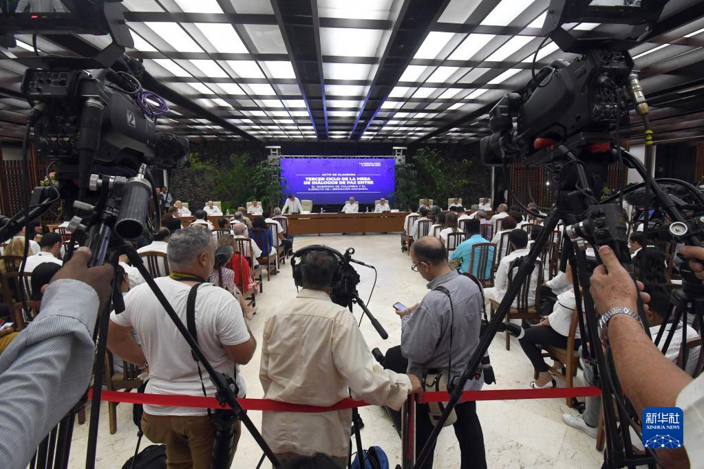 哥倫比亞政府與反政府武裝“哥倫比亞民族解放軍”在古巴首都哈瓦那舉行的第三輪和談9日結束,雙方簽署了臨時(shí)?;饏f(xié)議。