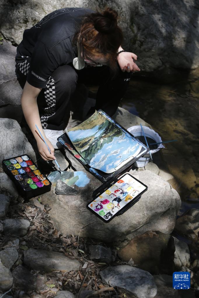 6月9日,學(xué)生在河南安陽(yáng)林州市石板巖鎮三畝地村寫(xiě)生。
