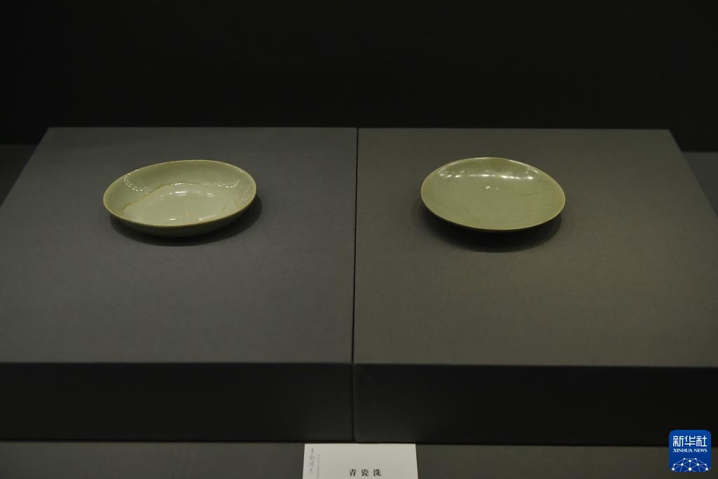 這是6月10日在鄭州大象陶瓷博物館拍攝的展品青瓷洗。