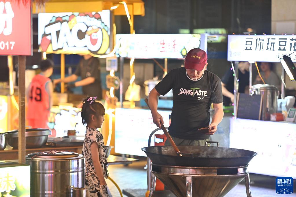 夏夜里,廣西柳州市柳北區新開(kāi)的廣雅民生夜市煙火氣升騰,炒田螺、螺螄粉、烤肉串等特色美食吸引眾多市民。