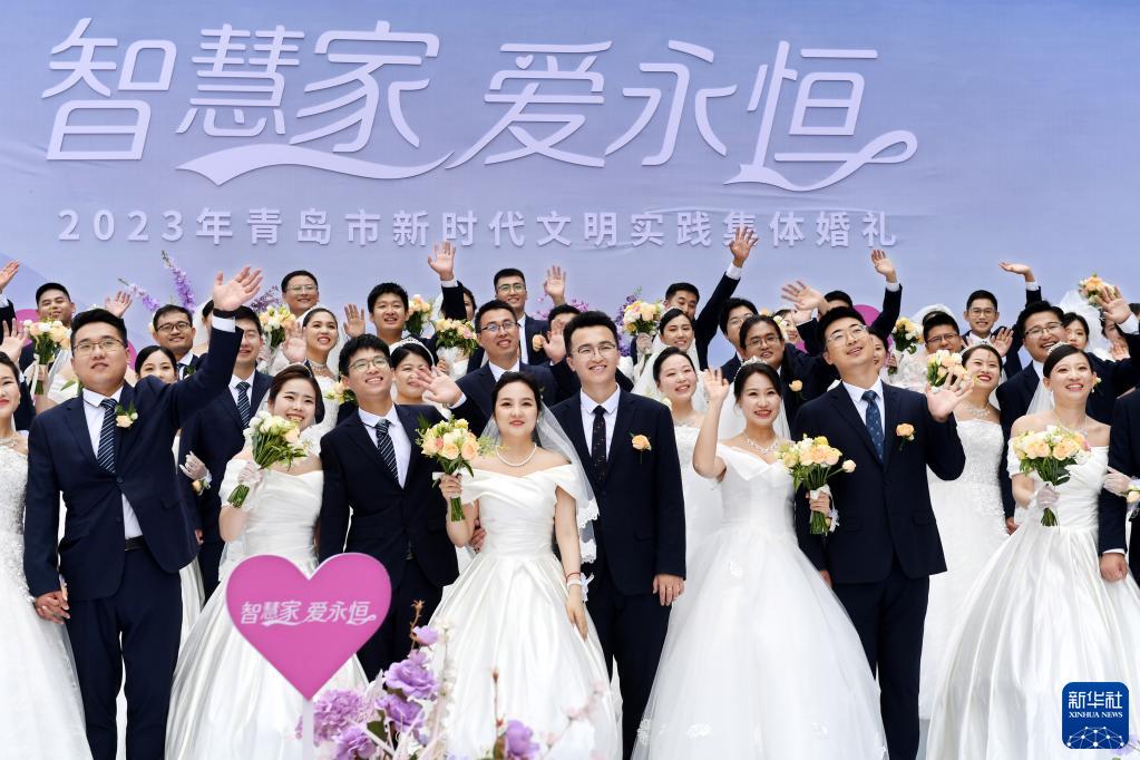 當日,“智慧家 愛(ài)永恒”——2023年青島市新時(shí)代文明實(shí)踐集體婚禮舉行,38對新人共同許下“恩愛(ài)永遠 相伴一生”愛(ài)的承諾。近年來(lái),青島市將節儉家風(fēng)與文明習俗相結合,大力提倡“喜事新辦、新事簡(jiǎn)辦”,引導人們積極踐行時(shí)代新風(fēng)。