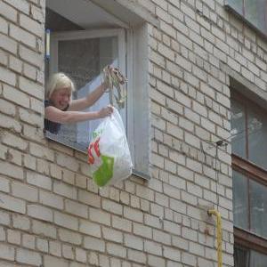 6月9日,一名水利工作人員在赫爾松市被洪水淹沒(méi)的街道測量水位。