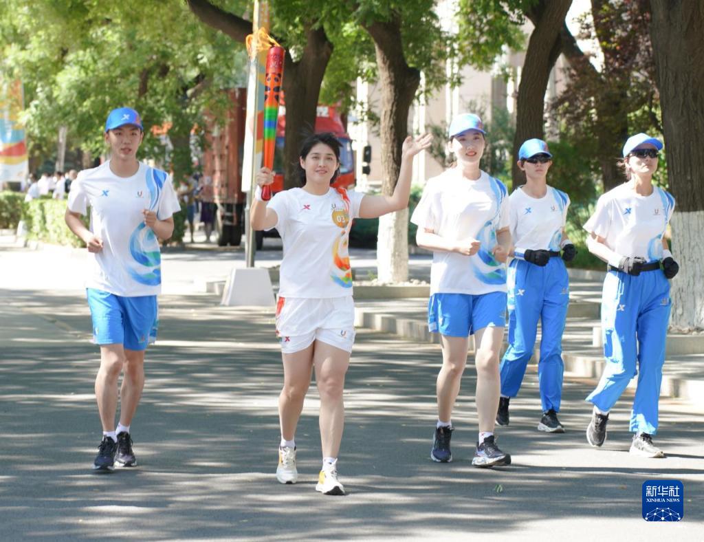 6月10日,火炬手于靜(左二)在火炬傳遞中。