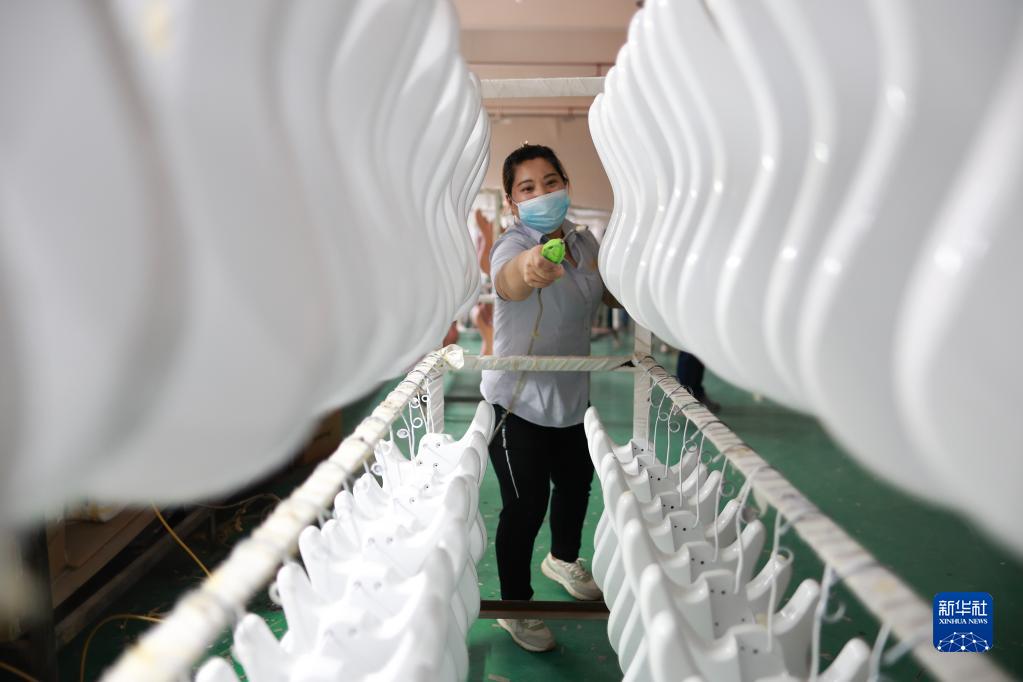 工作人員在正安吉他產(chǎn)業(yè)園內制作吉他(6月7日攝)。