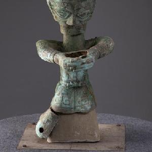 這是銅罍座倒立鳥(niǎo)足頂尊神像相對完整形態(tài)。