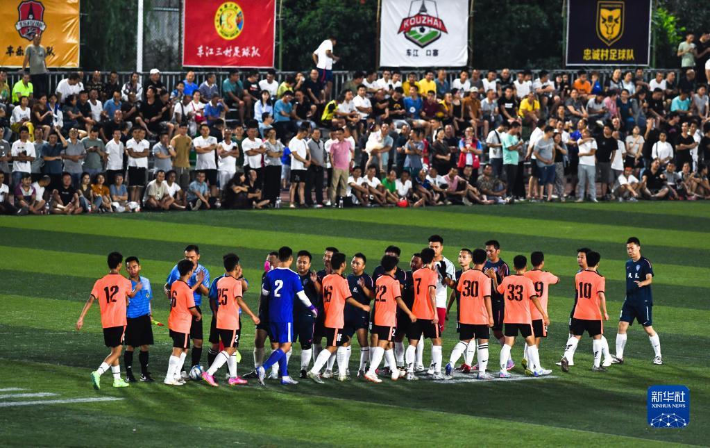 6月9日,鳳凰村足球隊與新中村足球隊在比賽結束后相互擊掌致意。