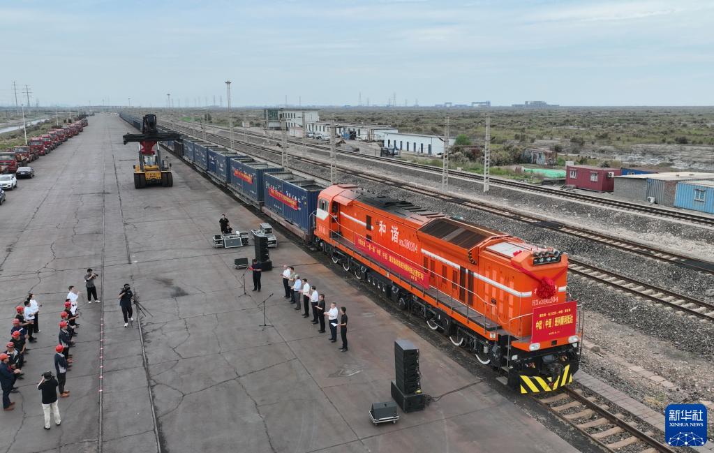 新華全媒+丨河北曹妃甸港區迎來(lái)首列烏蘭巴托發(fā)出的中歐(中亞)班列