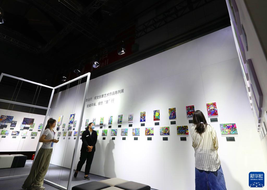 6月11日,參觀(guān)者在博覽會(huì )上一個(gè)低碳環(huán)保主題兒童繪畫(huà)作品展示區內駐足觀(guān)看。