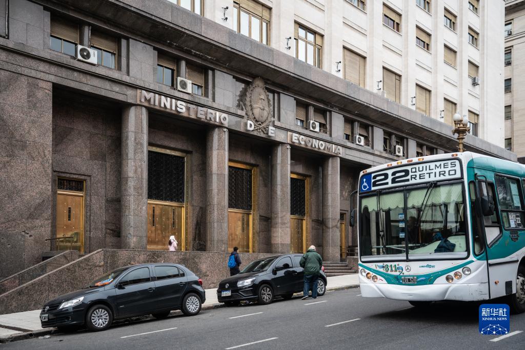 6月10日,在阿根廷首都布宜諾斯艾利斯,一輛巴士經(jīng)過(guò)阿根廷國家經(jīng)濟部大樓。