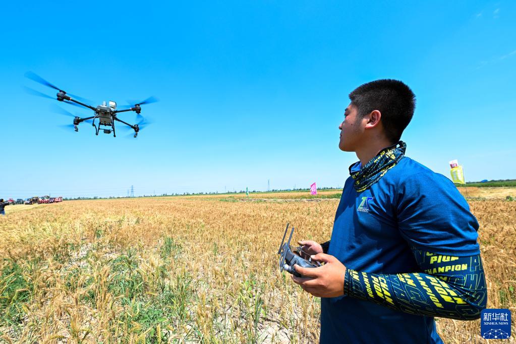 6月11日,在天津市靜海區蔡公莊鎮,技術(shù)人員操作植保無(wú)人機。
