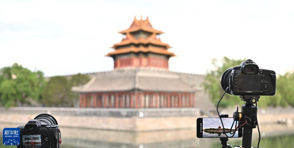 6月11日,攝影愛(ài)好者使用相機和手機拍攝北京故宮角樓。
