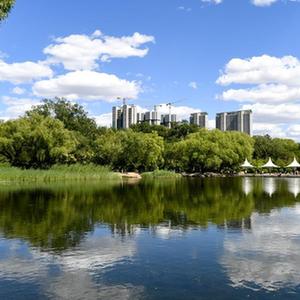 夏日時(shí)節,內蒙古呼和浩特天氣晴朗,藍天、白云與青山碧水組成一幅美麗的生態(tài)畫(huà)卷。