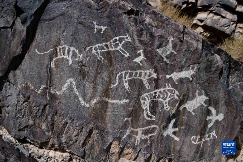 甘肅省嘉峪關(guān)市黑山巖畫(huà)中的一幅獸群巖畫(huà)(資料照片)。