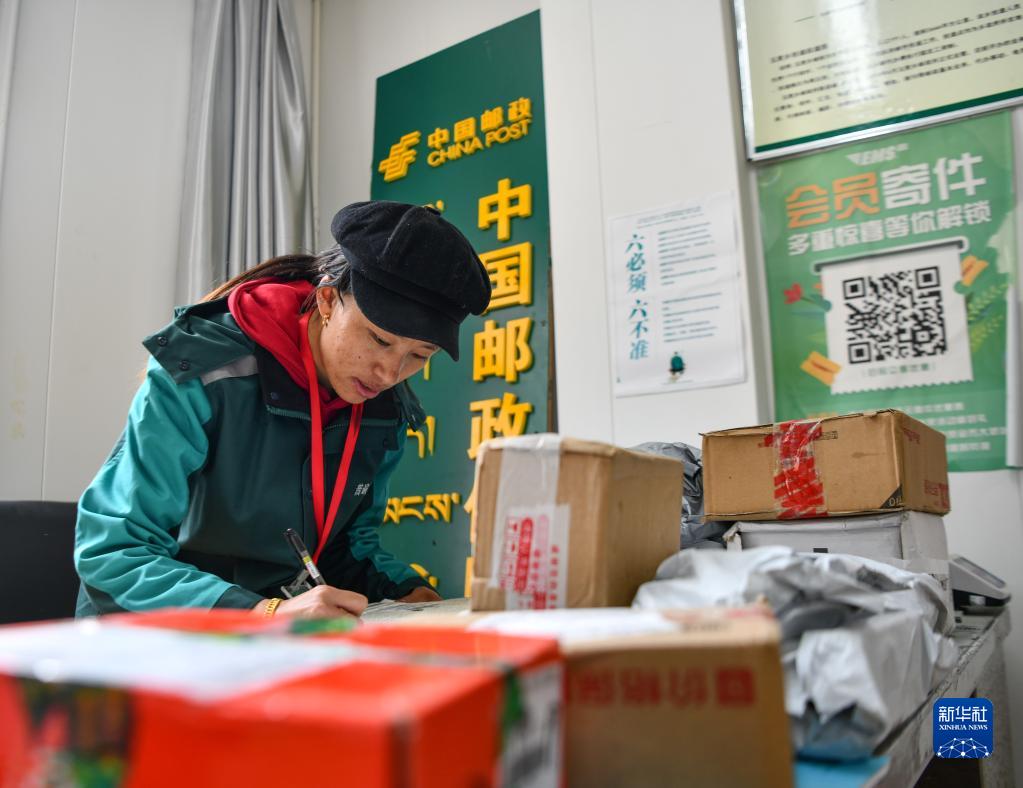 玉麥鄉郵政營(yíng)業(yè)員索朗卓嘎在登記快遞郵件(6月10日攝)。