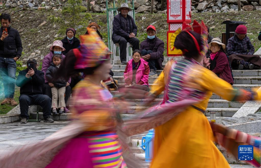 6月10日,玉麥鄉的村民欣賞來(lái)自隆子縣的文藝工作者表演的藏戲。