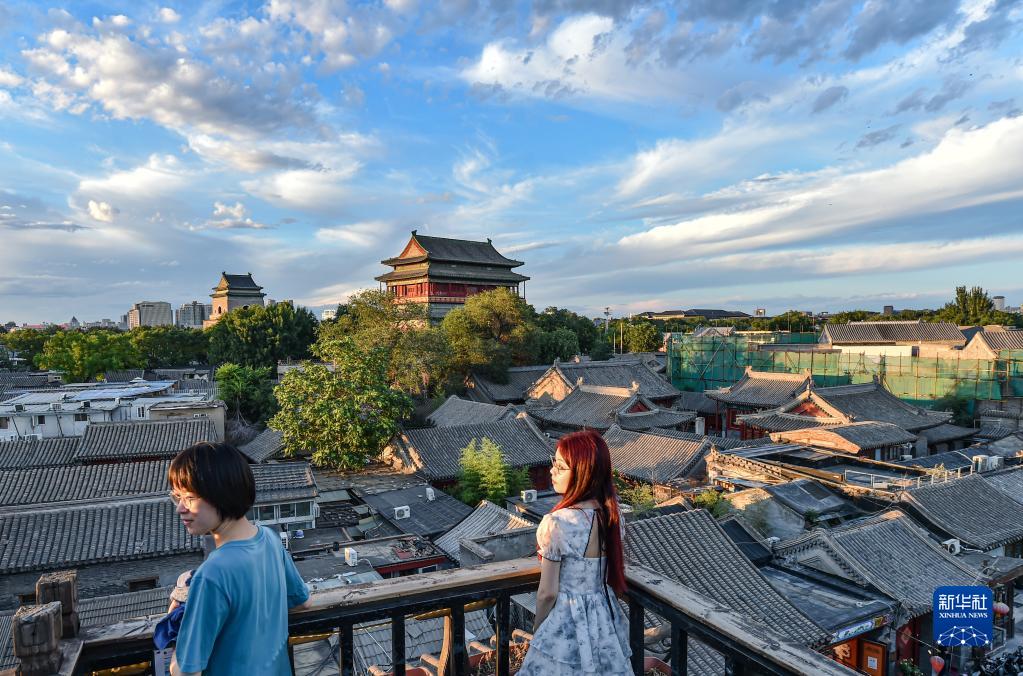 6月10日,人們在北京什剎海附近咖啡廳露臺欣賞風(fēng)景。新華社記者 陳鐘昊 攝