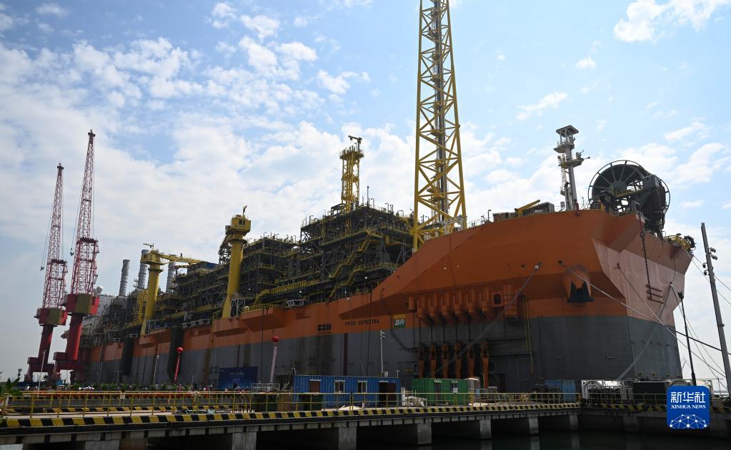 這是6月12日拍攝的??吭诖a頭的海上浮式生產(chǎn)儲卸油船(FPSO)“SEPETIBA”輪。新華社記者 趙子碩 攝