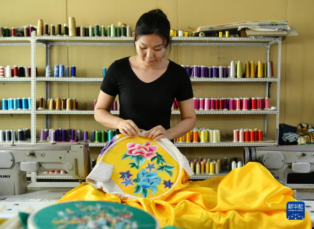 6月13日,河北省肅寧縣邵莊鄉東高家口村一家戲曲服裝廠(chǎng)的工人在繡制戲曲服裝。