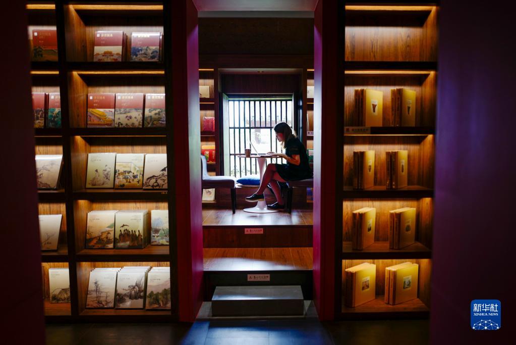 6月9日,一名游客在重慶故宮文物南遷紀念館的書(shū)吧內。