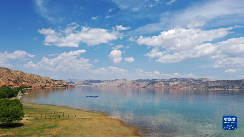 位于甘肅省臨夏回族自治州永靖縣境內劉家峽水庫的黃河三灣碧波蕩漾、岸線(xiàn)蜿蜒,片片小舟在水面搖曳,呈現一幅夏日清新畫(huà)卷。