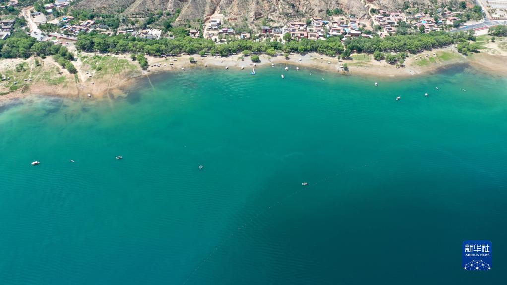 位于甘肅省臨夏回族自治州永靖縣境內劉家峽水庫的黃河三灣碧波蕩漾、岸線(xiàn)蜿蜒,片片小舟在水面搖曳,呈現一幅夏日清新畫(huà)卷。