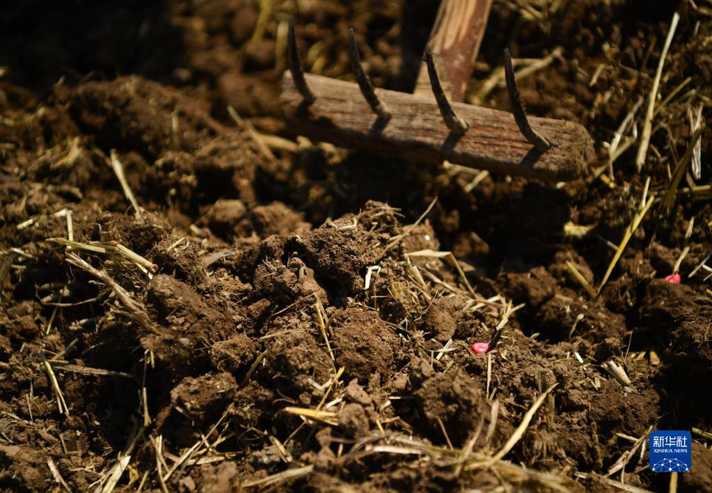6月13日,在陜西省西安市鄠邑區五竹街道,農戶(hù)在已經(jīng)播種玉米的田地上松土。