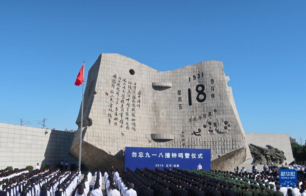 這是2019年9月18日拍攝的“勿忘九一八”撞鐘鳴警儀式現場(chǎng)。
