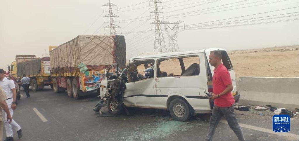 這是6月13日在埃及首都開(kāi)羅附近拍攝的交通事故現場(chǎng)。