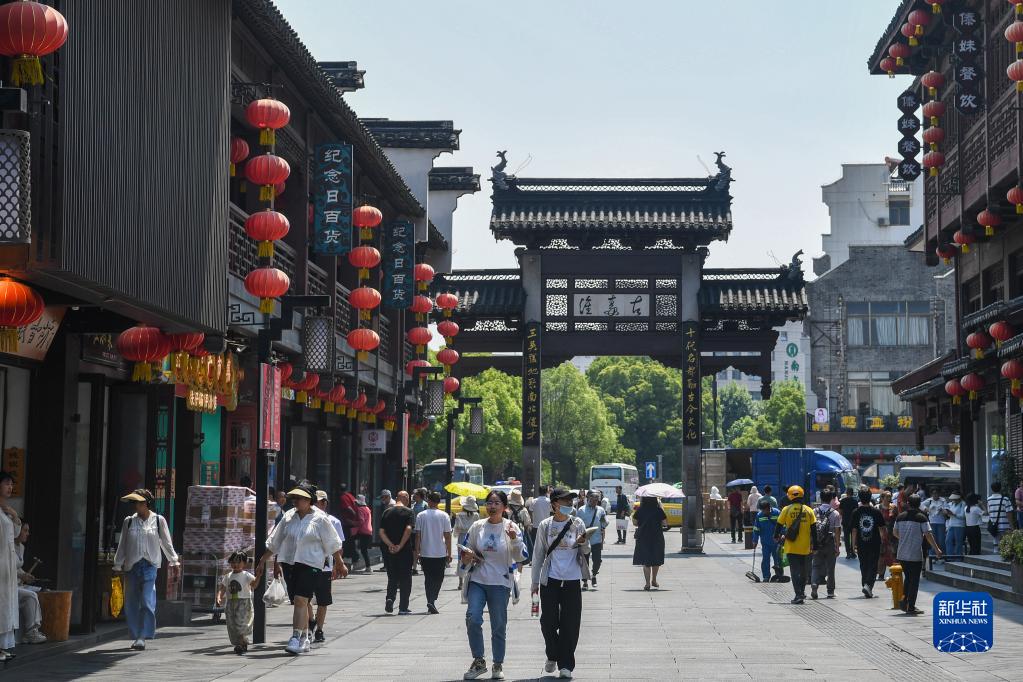 游客在南京夫子廟景區參觀(guān)游玩(6月12日攝)。