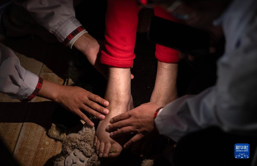 “這個(gè)村子的年輕人多外出務(wù)工,很多患有慢性疾病的老人行動(dòng)不便,我們就送醫上門(mén)?!蓖跽窠t生介紹說(shuō)。經(jīng)過(guò)多年援藏工作的摸索,醫療隊針對當地特點(diǎn)建立起了一套高效的機制,而送醫上門(mén)是這個(gè)機制中非常重要的一環(huán):村醫把村里病人的情況上報給鄉衛生院,鄉衛生院再把各個(gè)村的情況匯總之后上報到援藏醫療隊,援藏醫療隊根據病人的情況提供訂單式的上門(mén)服務(wù)。雖然今年2月底才抵達西藏,但王振疆、陳冰和王彤旭已經(jīng)參加了5次這樣的送醫上門(mén)活動(dòng)。