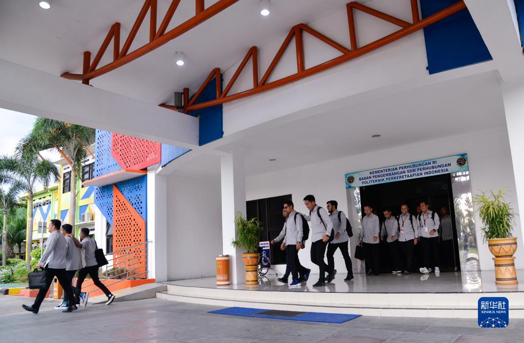 6月7日,在位于印度尼西亞茉莉芬市的印尼鐵路理工學(xué)院,雅萬(wàn)高鐵動(dòng)車(chē)組司機培訓班學(xué)員走出教學(xué)樓。