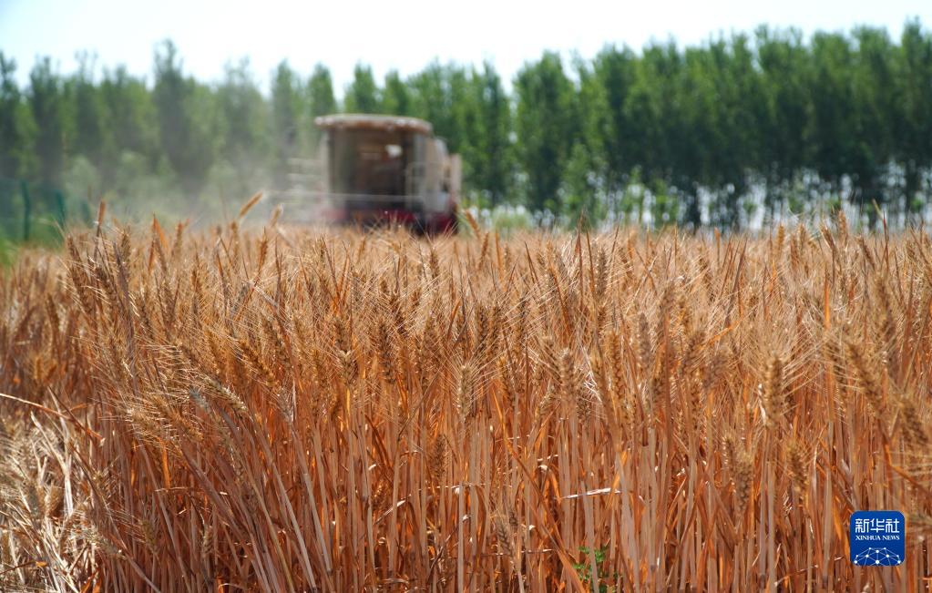 6月14日,在山東省臨邑縣林子鎮,聯(lián)合收割機在收獲小麥。