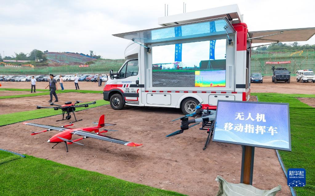 這是演練現場(chǎng)展示的無(wú)人機移動(dòng)指揮車(chē)(6月14日攝)。