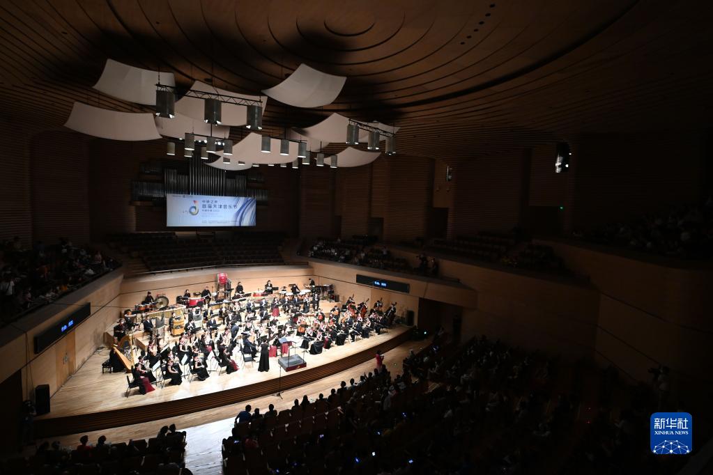 當日,作為首屆天津音樂(lè )節期間的重要演出之一,天津歌舞劇院民族樂(lè )團、北京民族樂(lè )團、河北民族樂(lè )團在天津大劇院音樂(lè )廳合作演繹民族交響詩(shī)《大運河》。新華社記者 趙子碩 攝