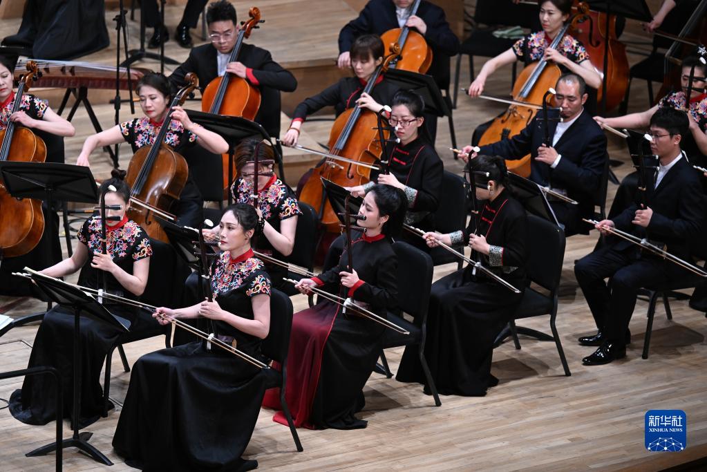 當日,作為首屆天津音樂(lè )節期間的重要演出之一,天津歌舞劇院民族樂(lè )團、北京民族樂(lè )團、河北民族樂(lè )團在天津大劇院音樂(lè )廳合作演繹民族交響詩(shī)《大運河》。新華社記者 趙子碩 攝