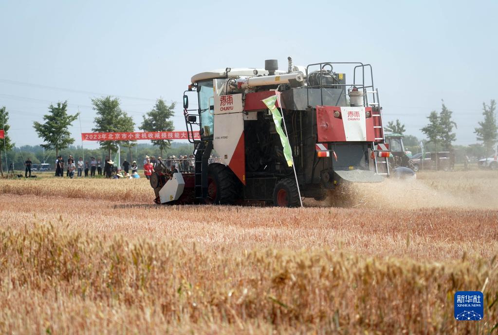 6月15日拍攝的2023年北京市小麥機收減損技能大比武現場(chǎng)。