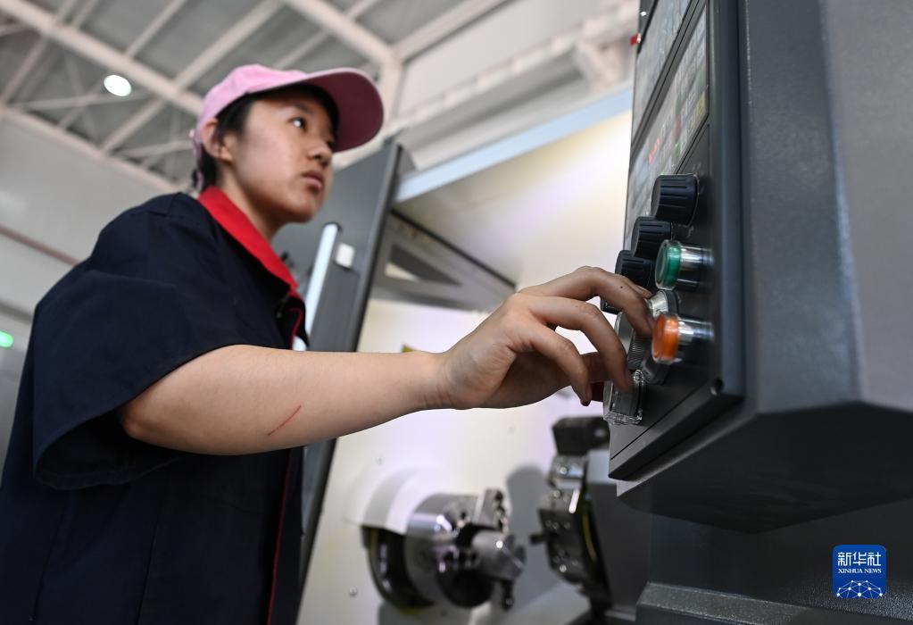 6月15日,在第二屆全國技能大賽陜西省選拔賽數控車(chē)項目測試賽中,選手操作數控機床。