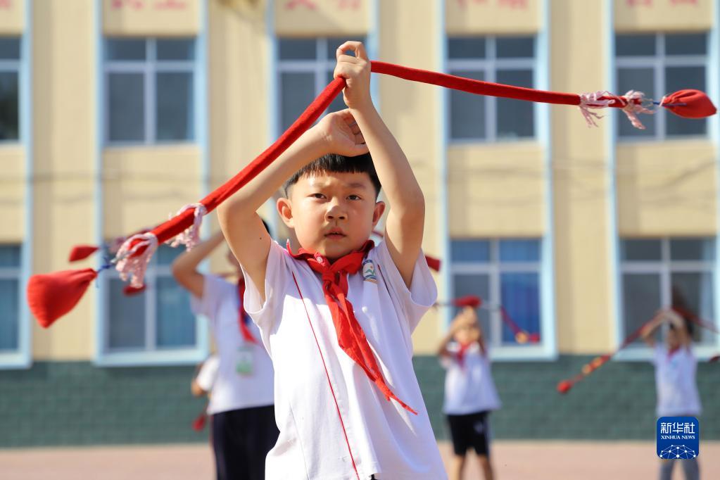 6月15日,在河北省滄州市吳橋縣運河小學(xué),學(xué)生練習傳統雜技水流星。