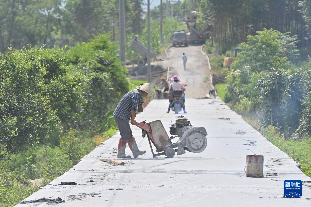 6月15日,在鹿寨縣中渡鎮石墨村,工人在建設田間道路。