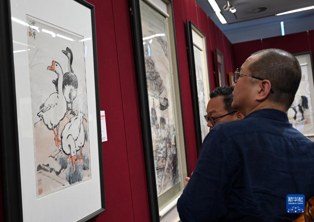 6月15日,觀(guān)眾參觀(guān)徐悲鴻作品《鵝群》。