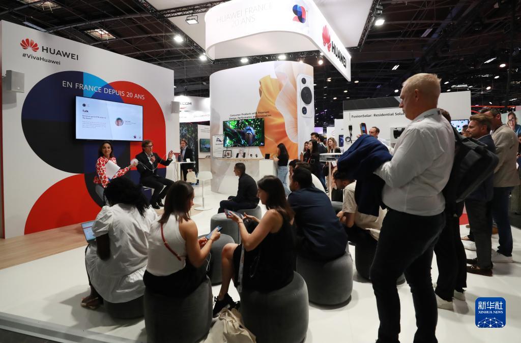 6月15日,在法國巴黎凡爾賽門(mén)展覽中心,人們在“科技萬(wàn)歲”科技創(chuàng )新展上的華為展臺參觀(guān)。