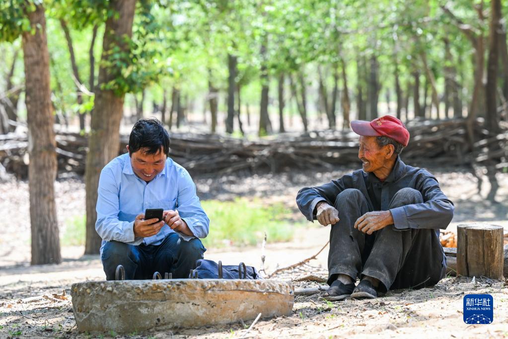 6月14日,曹扎娃(右)在樹(shù)林里和到訪(fǎng)的鄰居聊天。