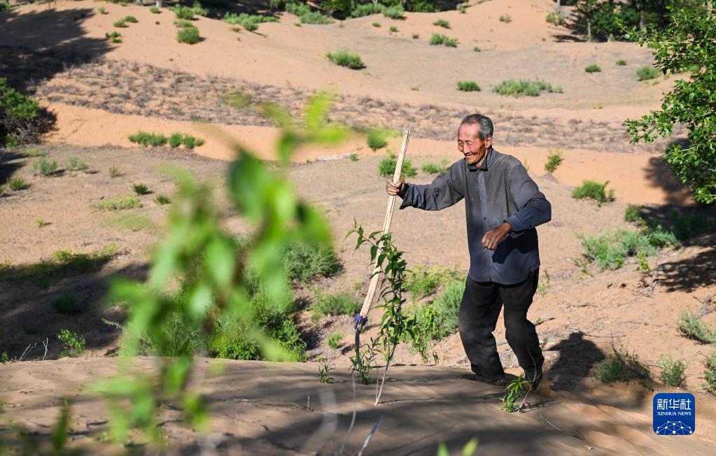 內蒙古鄂托克前旗城川鎮呼和陶勒蓋嘎查地處毛烏素沙地腹地,這里曾經(jīng)風(fēng)沙肆虐,當地的農牧民深受其害。從1958年開(kāi)始,16歲的曹扎娃便跟著(zhù)父輩們一起種樹(shù)治沙,成為種樹(shù)能手。