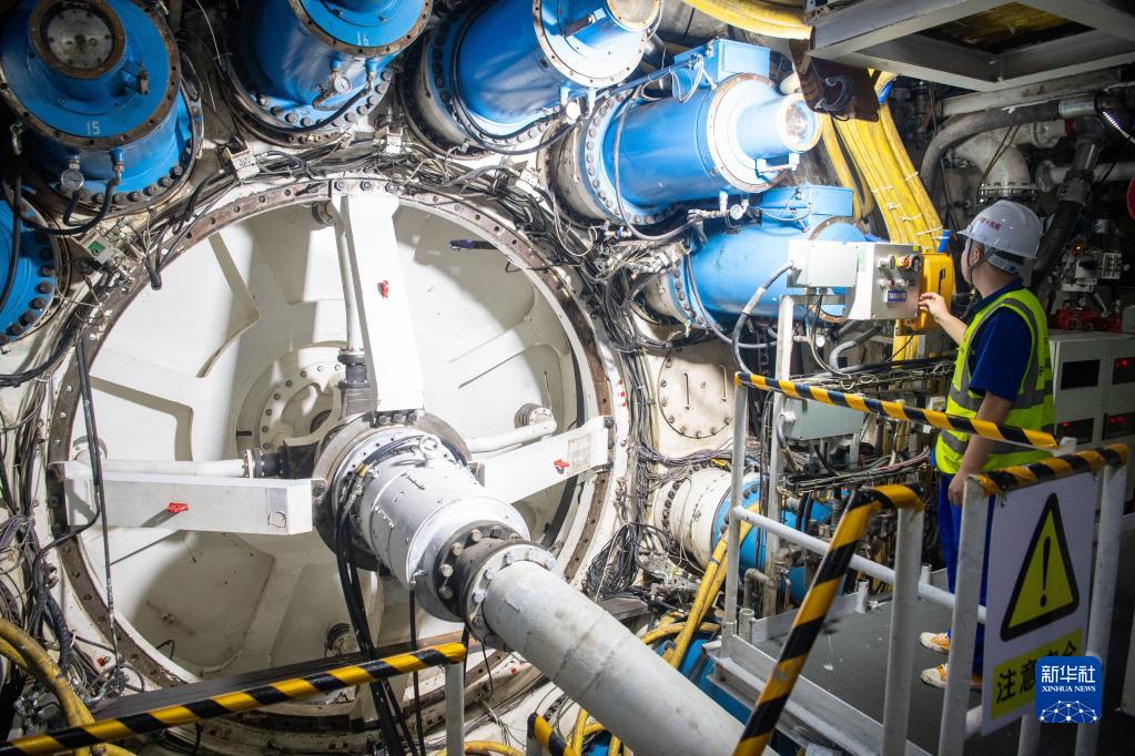 6月16日,工作人員在檢查“長(cháng)江號”盾構機運行情況。