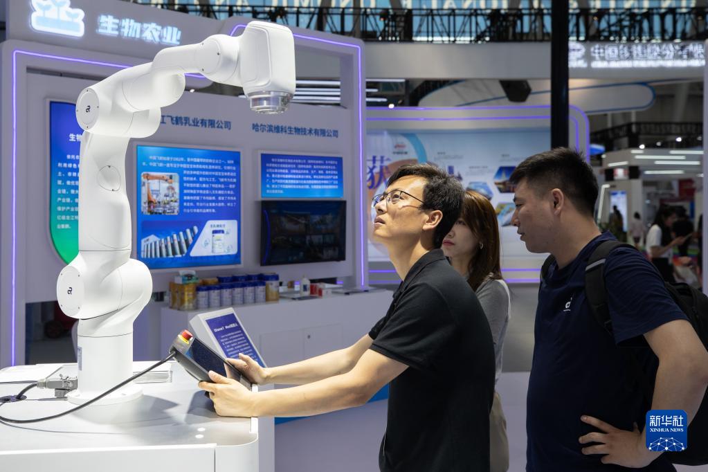 6月16日,參展商在現場(chǎng)操控醫療機器人。
