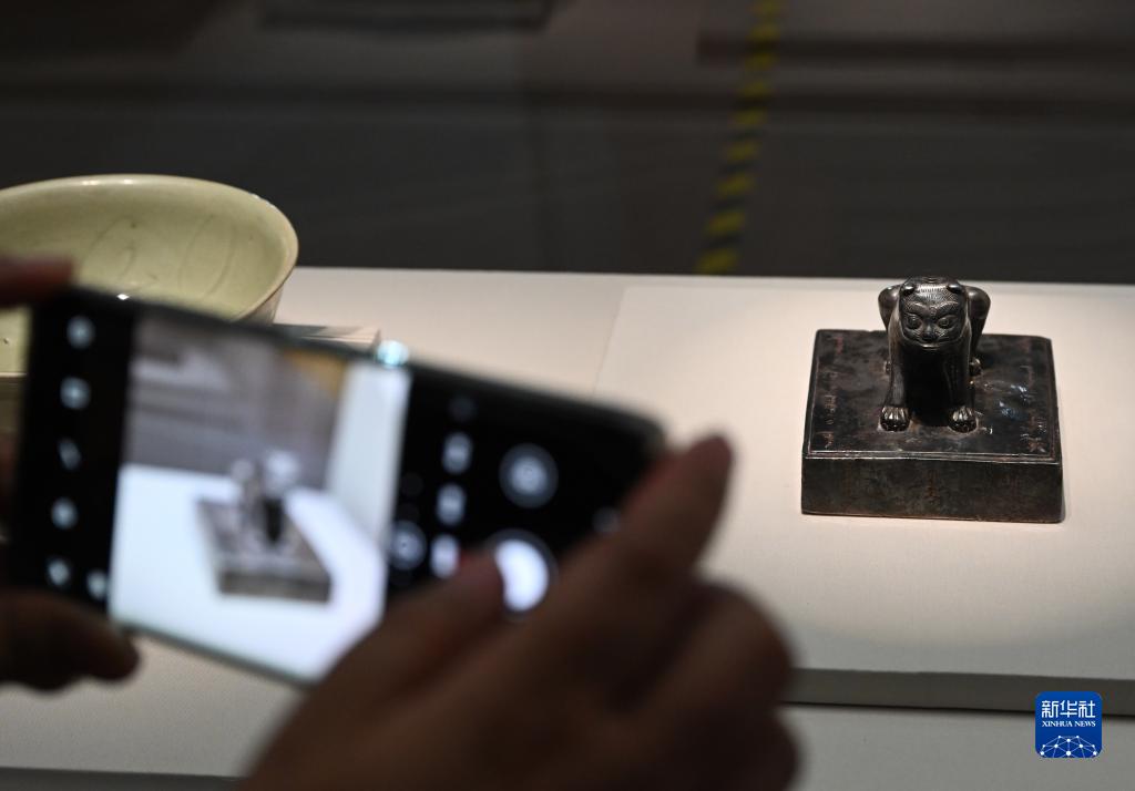 6月16日,觀(guān)眾拍攝展出的土爾扈特銀印。