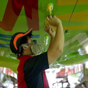 6月15日,海航斯提斯噴漆作業(yè)員在恢復機身外部標牌。