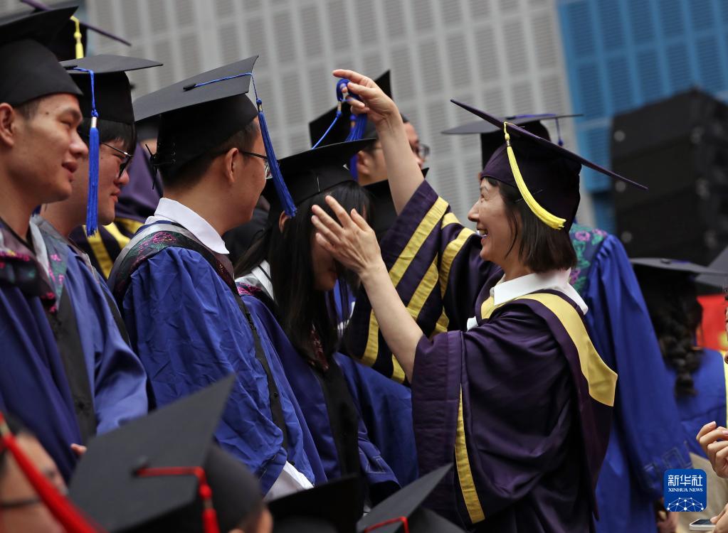 6月16日,在復旦大學(xué)2023屆研究生畢業(yè)典禮暨學(xué)位授予儀式上,復旦大學(xué)現代物理研究所的沈皓教授(右一)為畢業(yè)生撥穗。