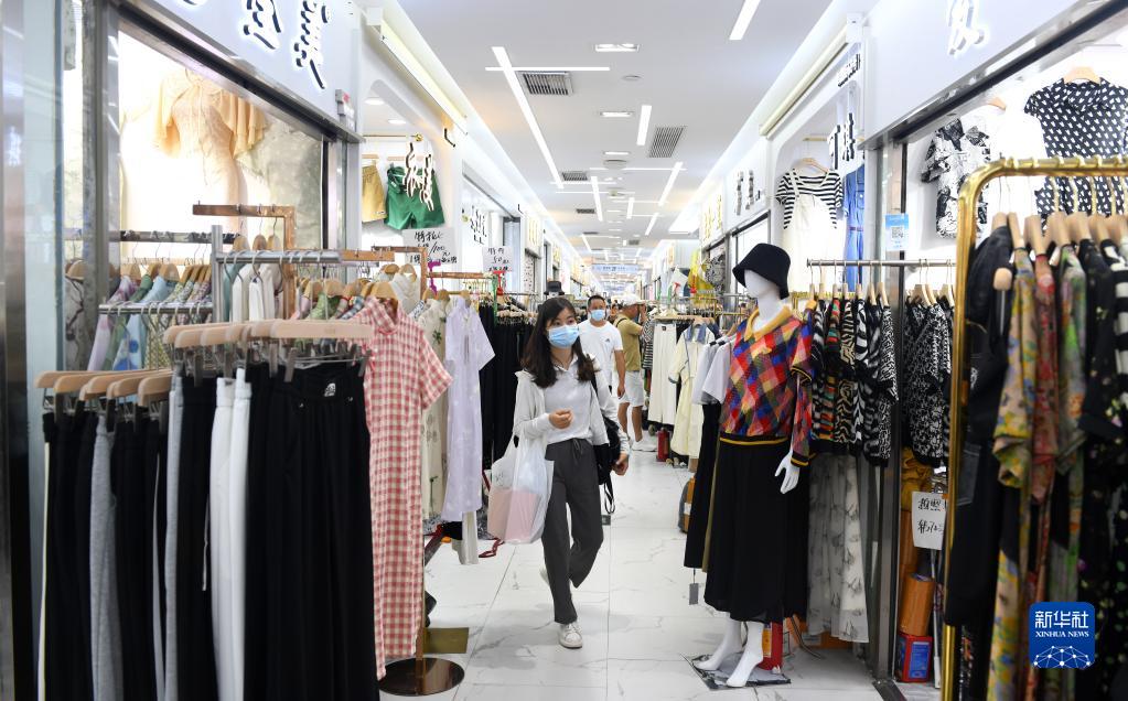 客商在廣州市十三行廣場(chǎng)里選購服裝(6月13日攝)。